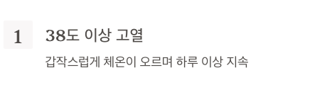 - 갑작스럽게 체온이 오르며 하루 이상 지속되는 경우가 많음